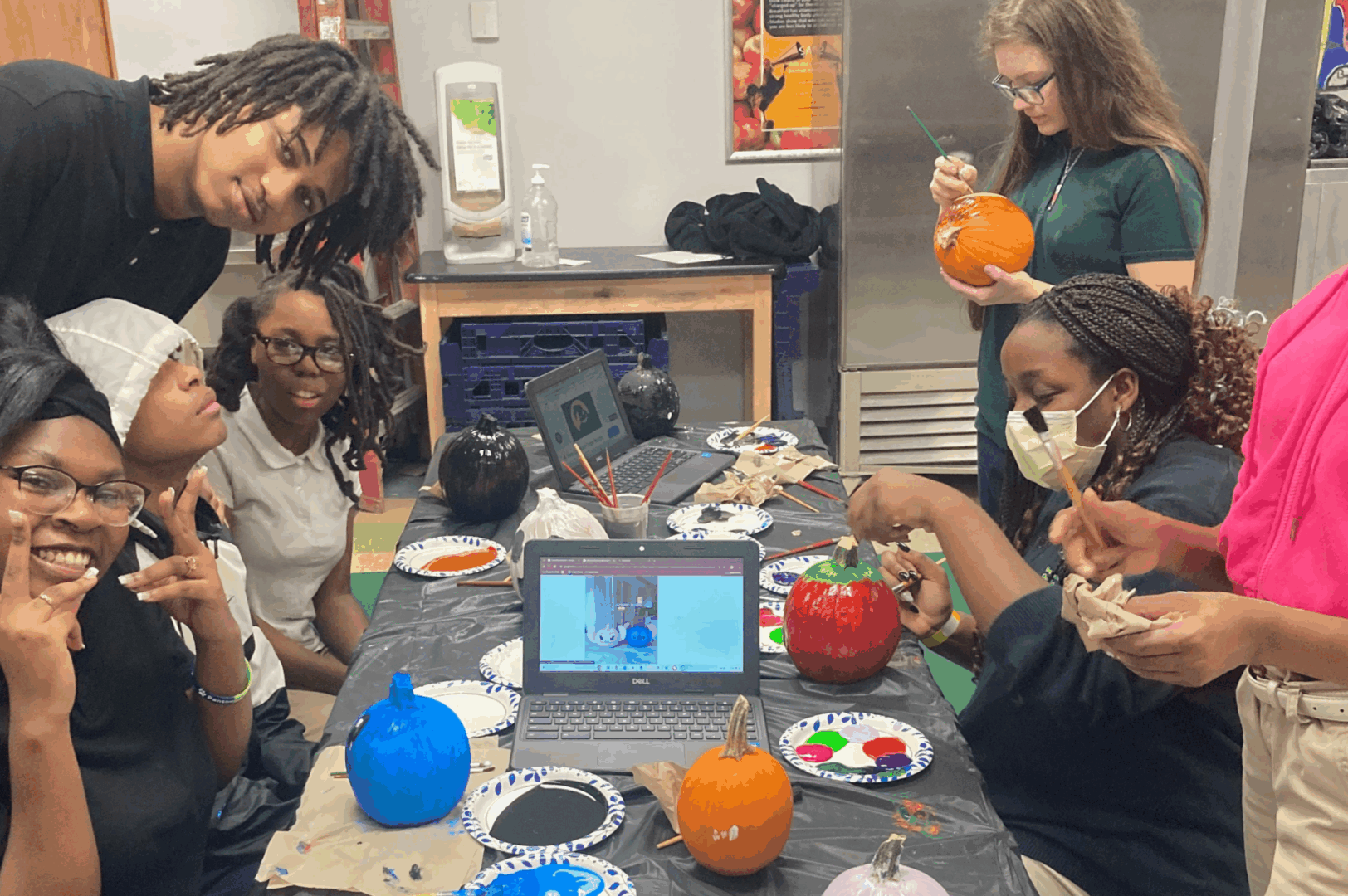 Everyone had fun transforming ordinary pumpkins into vibrant masterpieces during a fall painting project!